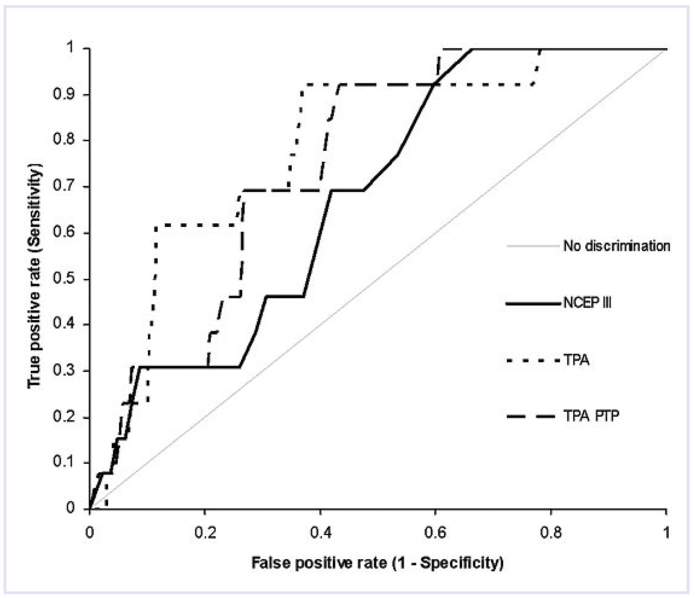 Sensitivities and specificities of NCEP III, TPA and TPA-PTP