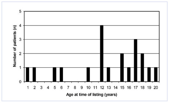 Methods: This was a single centre, retrospective study of all consecutive patients listed for heart transplantation between 1994 and 2008 who were less than 20 years old. Clinical parameters, ECG, echocardiography and catheter data as well as duration and complications of mechanical circulatory support, were reviewed from the date of listing to the date of transplantation or death.