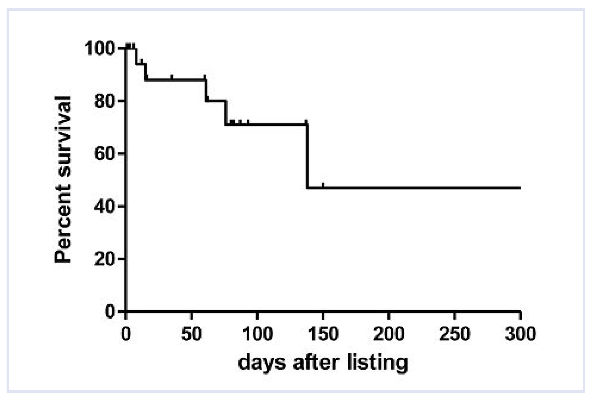 Figure 2). A total of three patients died early after heart transplantation from sepsis (2) and graft failure (1), resulting in a survival rate to hospital discharge of 60% (12/20). Demographic and clinical data was compared between the group of patients who died while waiting for an appropriate donor heart and the group who survived to transplantation (