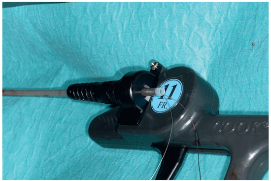 The Cook Evolution 11 French liberator used for the intervention. The two leads, each with a locking stylet, were introduced together into the liberator. An outer sheath was also placed around the liberator to allow free rotation of the bladed sheath. Constant mechanical traction was applied to each locking stylet with the use of the rotating blade of the mechanical dilator and push and pull action on the outer sheath.