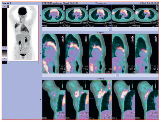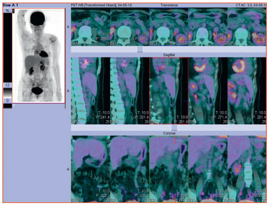 Figure 1. PET-CT scan of a 47-year old woman with Hodgkin lymphoma at the first diagnosis.