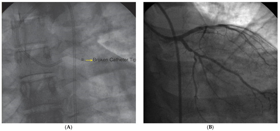 - Reddy, C.V.; Khan, R.; Feit, A.; Gordon, D.; El Sherif, N. Catheter separation during coronary angiography. Cathet Cardiovasc Diagn. 1983, 9, 417–419. [Google Scholar] [CrossRef] [PubMed]