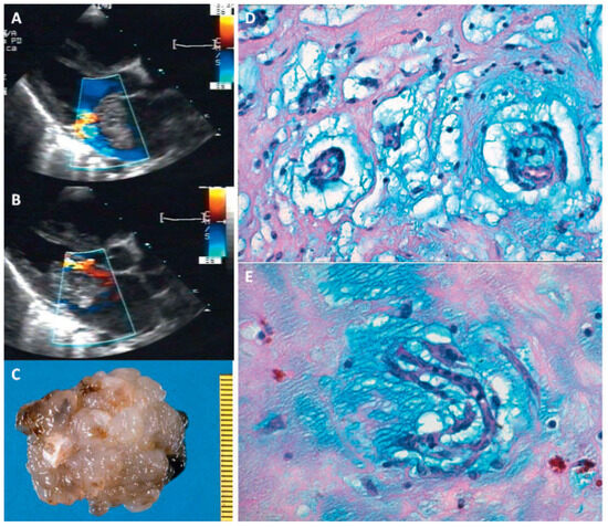 - Klarich, K.W.; Enriquez-Sarano, M.; Gura, G.M.; Edwards, W.D.; Tajik, A.J.; Seward, J.B. Papillary fibroelastoma: echocardiographic characteristics for diagnosis and pathologic correlation. J Am Coll Cardiol. 1997, 30, 784–790. [Google Scholar] [CrossRef]