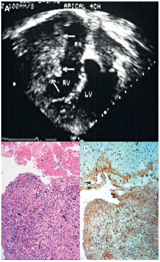 - Becker Anton, E. Primary heart tumors in the pediatric age group: a review of salient pathologic features relevant for clinicians. Pediatr Cardiol. 2000, 21, 317–323. [Google Scholar] [CrossRef] [PubMed]