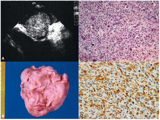 Primary cardiac sarcomas can occur at any age, but are more frequently diagnosed between the third and fifth decades, and equally in men and women [66], whereas they are extremely rare in the paediatric age group. Surgical excision is the most effective treatment for primary cardiac malignancies. However, prognosis is very poor in spite of additional treatments, such as radiotherapy and chemotherapy, with a median survival of less than one year and 80% of patients already present diffuse infiltration of the heart and metastases at the time of diagnosis [67,68,69,70]. A less-aggressive course seems related to the left atrium location, a low histologic grading with scarce cellular pleomorphism and low-mitotic activity, absence of necrosis, and absence of metastasis at diagnosis [7].