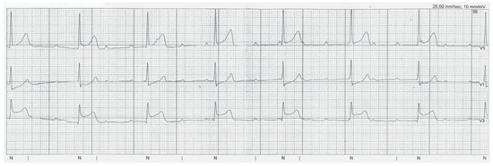 - Noble, S.; Carballo, D.; Burri, H. Malignant arrhythmia associated with chest pain and a diagnosis of myocarditis. Cardiovasc Med. 2011, 14, 27–28. [Google Scholar]