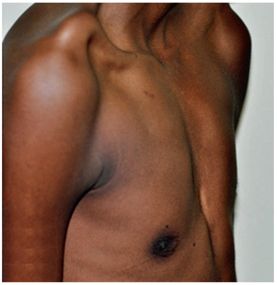 A 16-year-old male presented at our outpatient clinic with palpitations and worsening dyspnoea during the preceding five days. He had been complaining of dyspnoea since he was eight and had a history of recurrent respiratory infections. Physical examination revealed small upper limb, hands with absent or triphalangeal thumbs, hypoplasia of pectoralis major muscle and pectus excavatum (Figure 1 and Figure 2). Cardiac auscultation demonstrated grade 3 midsystolic murmur over pulmonic area (due to increased pulmonic blood flow) with widely split and fixed S2. Sinus bradycardia, first-degree atrio-ventricular block and right bundle branch block were present. Transthoracic echocardiography revealed ostium secundum atrial septal defect (ASD) with dilated right cavities (Figure 3). His mother and younger brother accompanied him and possessed similar bone anomalies. Transthoracic echocardiography was therefore also performed in these relatives and also revealed ostium secundum ASDs.