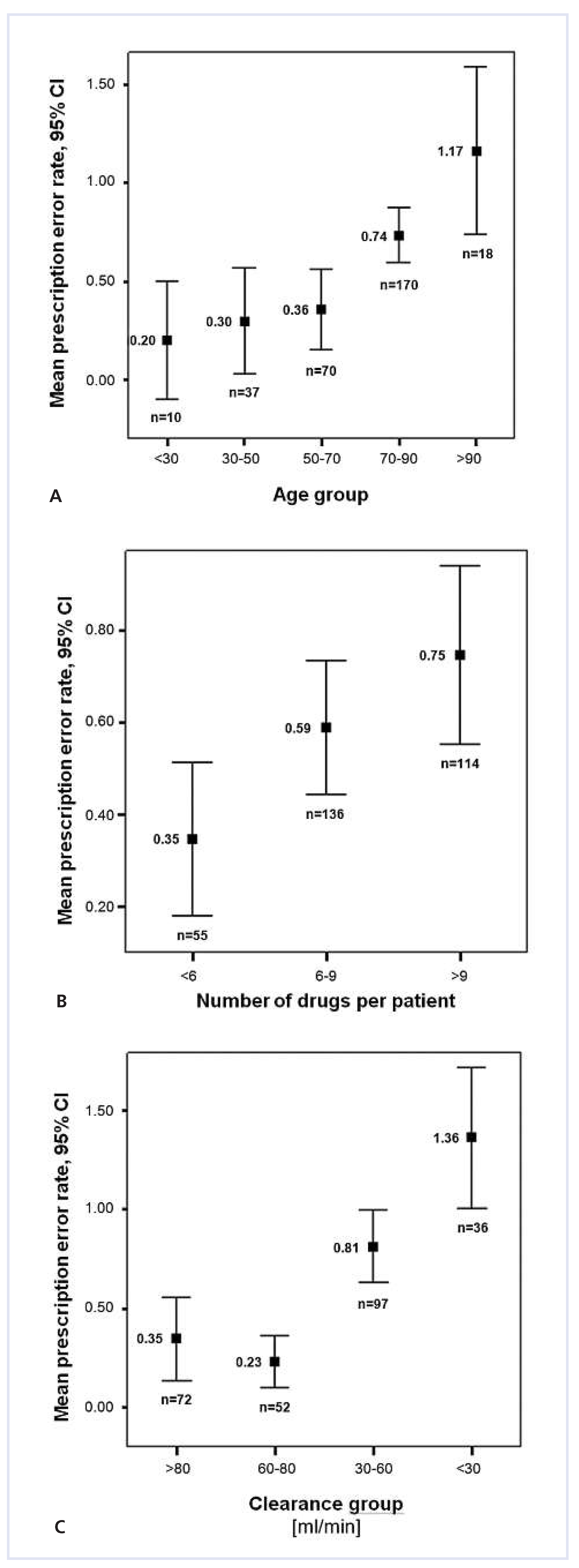 15]. Risk factors for prescribing errors were increasing age, creatinine clearance, and the number of drugs prescribed per patient. Since these factors are easily identified on the basis of clinical data, this knowledge could be effectively integrated into teaching and training, resulting in heightened awareness of risky prescribing situations.