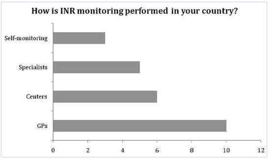 We assessed the way INR is monitored in a crosssectional study by using a questionnaire. The questionnaire was sent to all members of the Vasco da Gama Movement (VdGM), a network of junior and future GPs, which includes at least one member from most countries in Europe. We also sent the questionnaire to family doctors identified through the World Organization of Family Doctors (WONCA), in order to reach more remote countries. Since the participants in the survey were GPs or trainees involved in international collaboration, the validity of their knowledge of their countries’ systems was relatively high.
