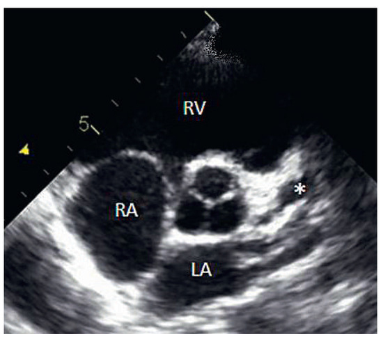 2D echocardiography (* = left anterior descending artery aneurysm).