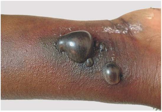 Arunkumar, P.; Palanimuthu, R. Blisters at Radial Puncture Site Following Coronary Angiogram. Cardiovasc. Med. 2013, 16, 191. https://doi.org/10.4414/cvm.2013.00142