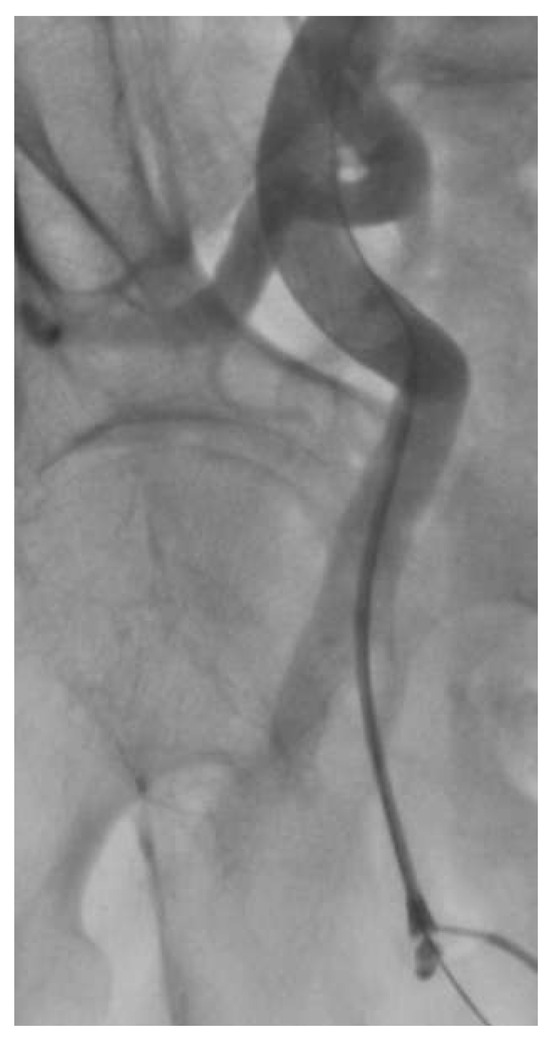 We share a case of unsuccessful use of the SoloPath® balloon-expandable sheath (Onset Medical, a subdivision of Terumo Medical Corporation, Irvine, CA) in a transfemoral transcatheter aortic valve replacement due to kinking in a patient with large diameter iliofemoral access and moderate vessel [...] Read more.