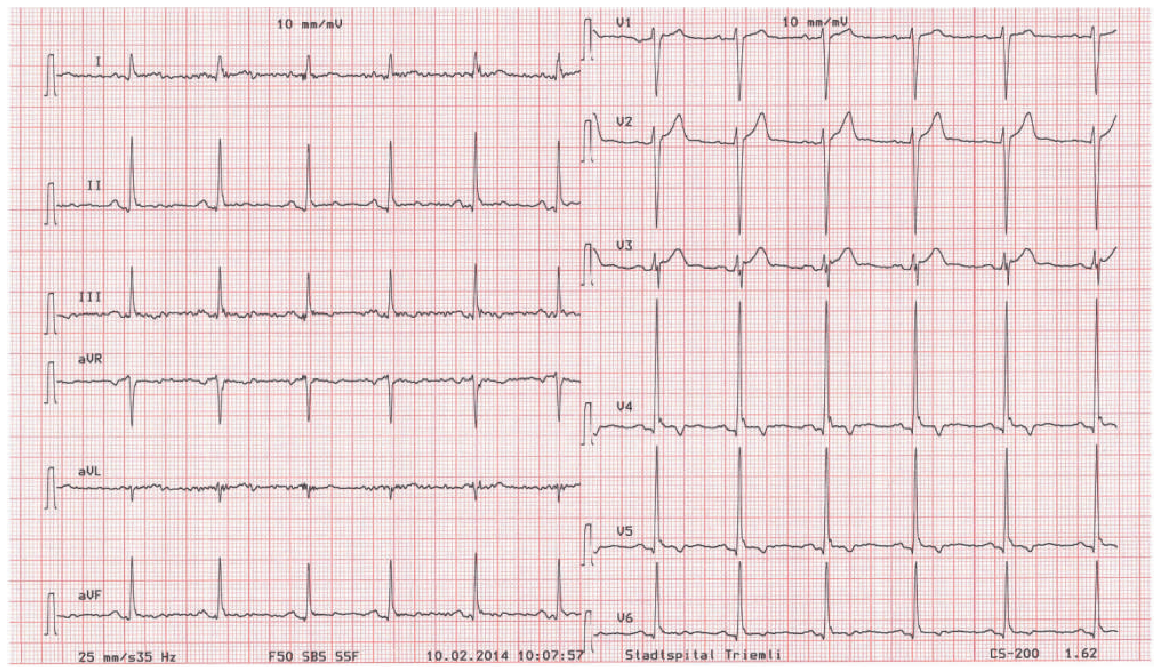 Müggler, S.A.; Dillier, R. Postural Changes in T Waves. Cardiovasc. Med. 2014, 17, 300. https://doi.org/10.4414/cvm.2014.00281