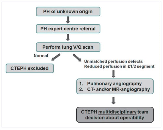Chronic thromboembolic pulmonary hypertension (CTEPH) is a rare and potentially fatal disease which occasionally occurs as a complication of acute pulmonary embolism. The mechanisms leading to failure of thrombus resolution are not completely understood with only some risk factors identified. Vascular alterations are present in the large and small vessel compartment. Signs and symptoms of CTEPH are nonspecific, rendering diagnosis challenging. A VQ scan followed by computed tomography, magnetic resonance or conventional pulmonary angiography is mandatory to confirm diagnosis and assess operability by a multidisciplinary team. Pulmonary endarterectomy remains the treatment of choice in operable patients and results in significantly improved haemodynamics and functional capacity. In inoperable patients medical treatment is well defined, and mainly includes the recently introduced pharmacological substances with impact on haemodynamics and functional performance. Full article