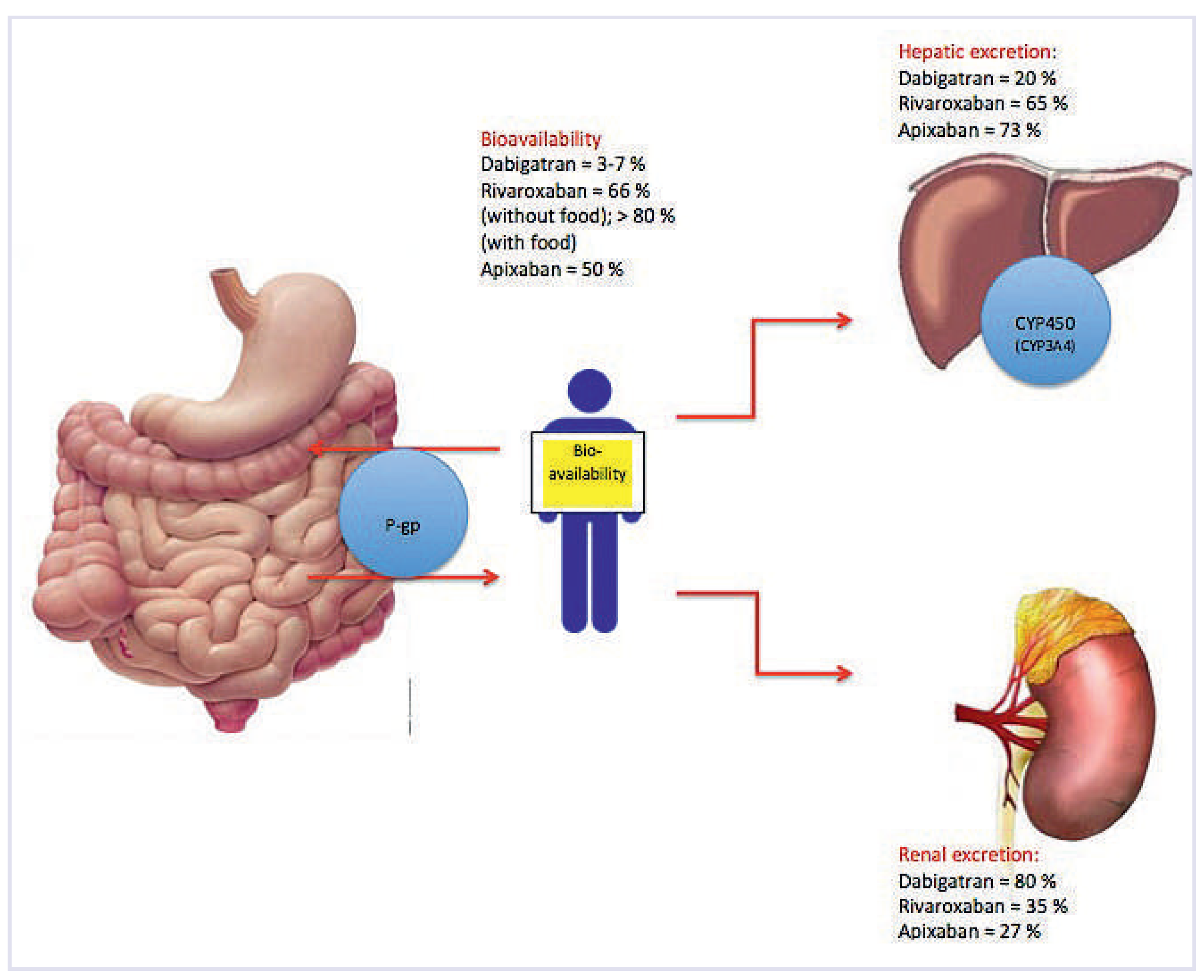 | Via | Dabigatran | Apixaban | Rivaroxaban | |