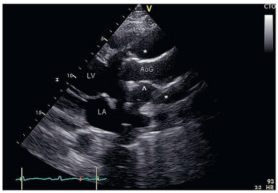 - Barbetseas, J.; Crawford, E.S.; Safi, H.J.; Coselli, J.S.; Quinones, M.A.; Zoghbi, W.A. Doppler echocardiographic evaluation of pseudoaneurysms complicating composite grafts of the ascending aorta. Circulation. 1992, 85, 212–222. [Google Scholar] [CrossRef] [PubMed]