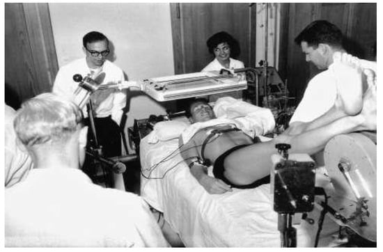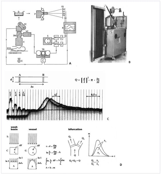 Figure 8A) at the Mayo Clinic in Rochester, Minnesota. He was a pioneer in Aeronautic Medicine, who designed the first anti-G-suit. Wood was also a pioneer in instrumentation for cardiac catheterisation and was the first to record densitograms during the passage of X-ray contrast. Later Wood designed the “dynamic spatial reconstructor”. Back in Zurich in 1965, Rutishauser focused his research on roentgendensitometry. He first used density curves based on 35 mm film with photocells [16], later based on videotape or disc with electronic windows (