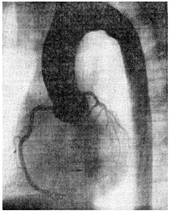 In 1962, we performed the first good visualisation of the coronary arteries in Zurich with Swedish help in the angiography room of the Radiology Institute: It consisted of a massive bolus of contrast material deposited into the root of the aorta ascendens, while the heart had been stopped 6 to 12 worrisome seconds by an intravenous injection of acetylcholine. Obviously this procedure showed both coronary arteries simultaneously (