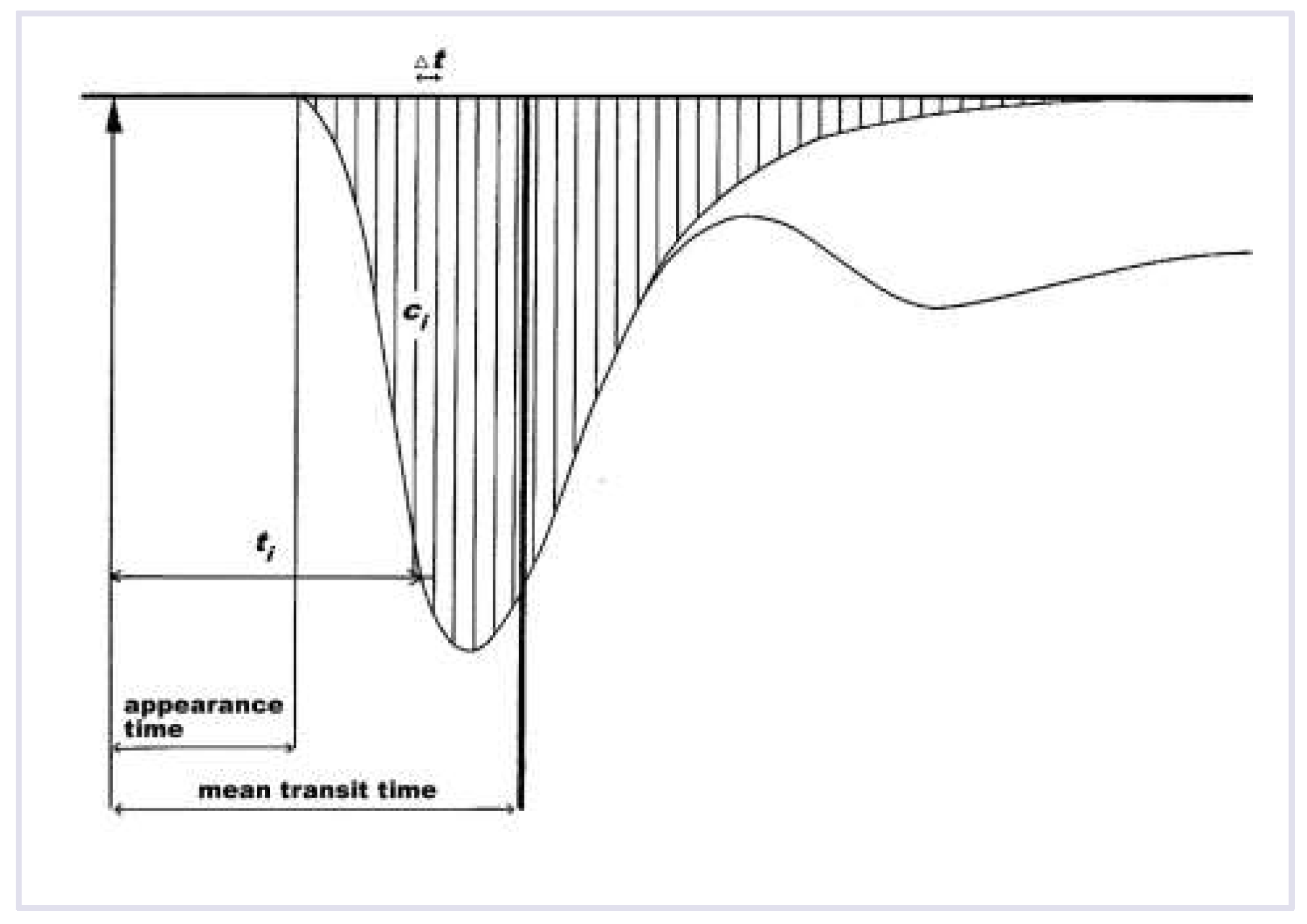 Figure 3) which is equal to the quotient of the blood volume (V) between the injection point and the detection site, divided by the cardiac output t¯ = V/Q [4].