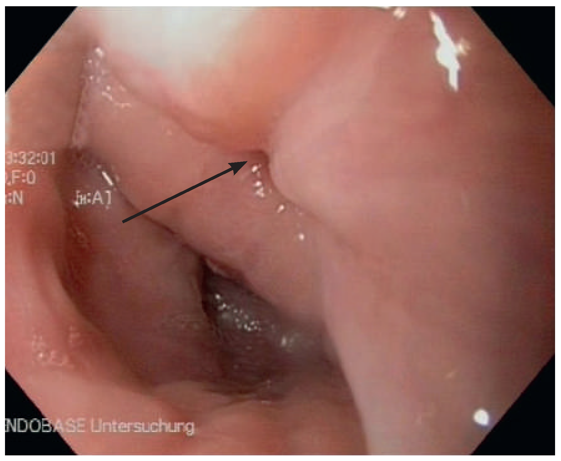 ZenkerDivertikel (Abgang des Ösophaguslumens mit Pfeil markiert).