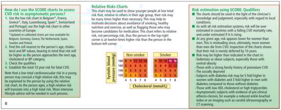 The major traditional risk factors for CVD are tobacco smoking, elevated blood pressure, elevated serum total cholesterol (TC) and low-density lipoprotein cholesterol (LDLC), low serum high-density lipoprotein cholesterol (HDL-C), diabetes mellitus, and advancing age. The quantitative relationship between these risk factors and coronary heart disease (CHD) risk has been elucidated by the Framingham Heart Study and other studies [27,28]. These show that the major risk factors are additive in predictive power. Accordingly, the total risk of a person can be estimated by a summation of the risks imparted by each individual major risk factor. The risk for CHD is assessed with risk charts, and usually the predicted 10-year risk of fatal