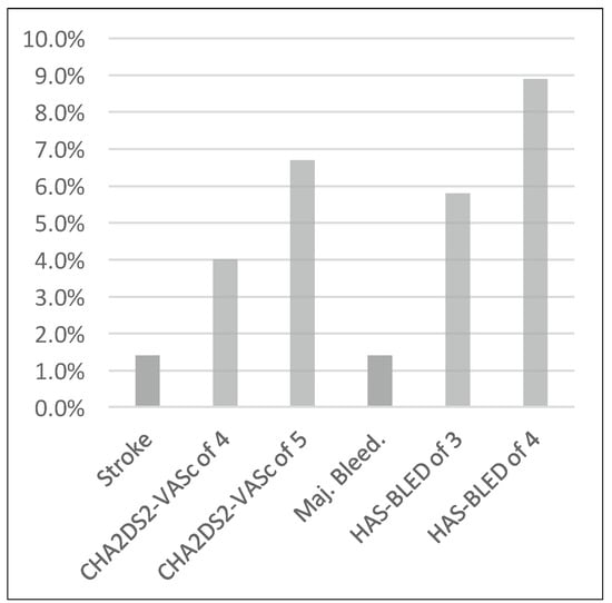 - Lip, G.Y.; Andreotti, F.; Fauchier, L.; Huber, K.; Hylek, E.; Knight, E.; et al.; Bleeding risk assessment and management in atrial fibrillation patients Executive Summary of a Position Document from the European Heart Rhythm Association [EHRA], endorsed by the European Society of Cardiology [ESC] Working Group on Thrombosis. Thromb Haemost. 2011, 106, 997–1011. [Google Scholar] [PubMed]