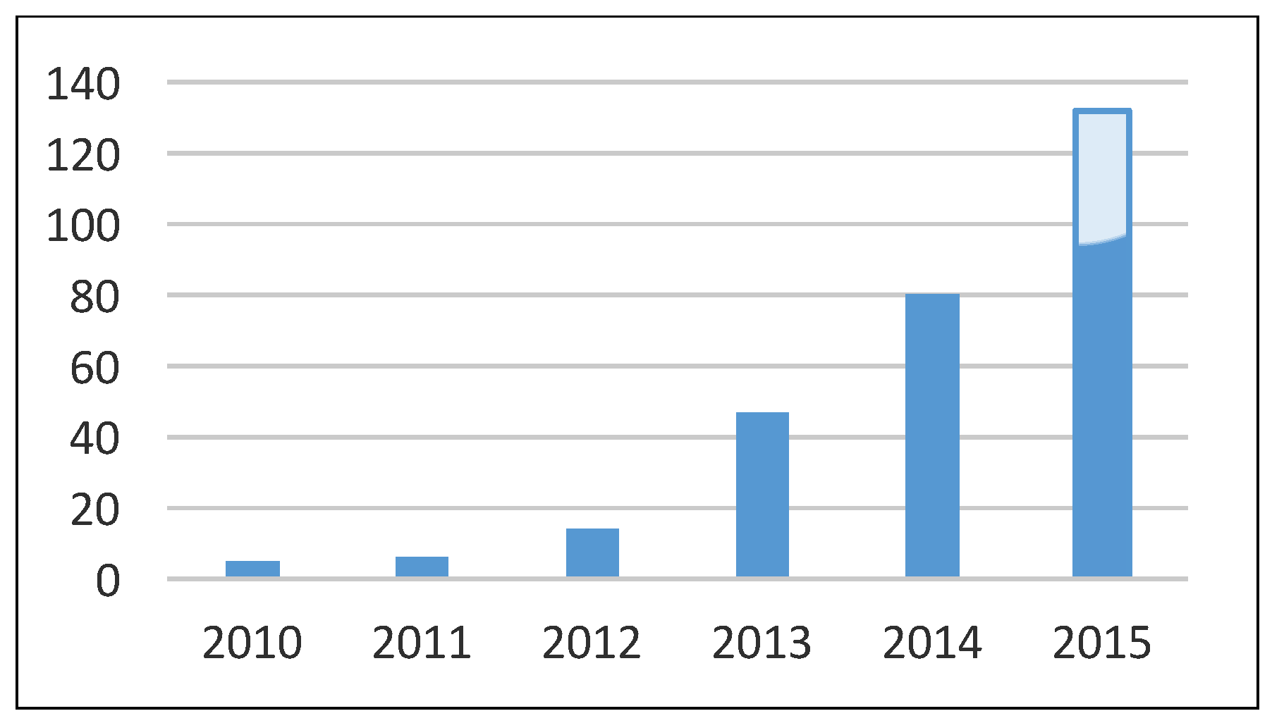 Since 2010, a significant increase in the number of procedures was noted, with 5 procedures in 2010 and 132 (95 included in this study) procedures in the first 11 months of 2015 (p = 0.003;