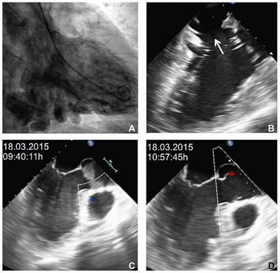 At 05:30 in the morning, a 51-year-old male patient in cardiogenic shock was admitted from an outside hospital. Four hours earlier, the patient had become symptomatic with epigastric pain, emesis and syncope, and suffered cardiorespiratory arrest. He had been resuscitated by his family prior to arrival of the emergency team. Professional resuscitation had been continued at the patient’s home for another 45 minutes. Coronary angiography revealed three-vessel coronary artery disease with chronic total occlusions of the right coronary artery and the left circumflex coronary artery, as well as severe stenoses of the left anterior descending artery. Left ventricular (LV) ejection fraction was 20%. In the LV infero-basal region, a sacular structure was seen; its “neck” (→) measured >2 cm in diameter (Figure 1A, B). Initial di erential diagnosis of this structure included, among others, LV pseudoaneurysm. Venoarterial extracorporeal membrane oxygenation (ECMO) was installed to treat the patient’s cardiogenic shock. Heparin infusion was started at 10:00. Transoesophageal echocardiography shortly after ECMO implantation revealed a permanently closed aortic valve with aortic root thrombosis (Figure 1C). At 10:00, 100 ml of sodium bicarbonate 8.4% was infused. At 10:57, the aortic valve was opening again, and the aortic root thrombosis had disappeared (Figure 1D). In the afternoon of the same day, the still shocked patient entered a myoclonic state. After interdisciplinary discussion, it was judged that neither surgical nor interventional therapy would alter the patient’s outcome. The patient expired late in the evening of the same day. Final diagnosis was not a mechanical complication of the probably subacute myocardial infarction (rather a congenital LV aneurysm), nor of its treatment by ECMO with aortic root thrombosis, but extensive ischaemic brain injury in the context of prolonged resuscitation.