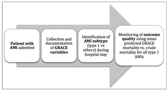 Conclusion: Assessment of risk-adjusted in-hospital mortality in AMI is feasible, provides important insights regarding treatment results while improving comparability between hospitals, but is very time-consuming if done retrospectively. Prospective documentation of the GRACE score within the electronic medical records would help to reduce the effort needed to obtain this novel QI. Further multicentre studies are warranted.