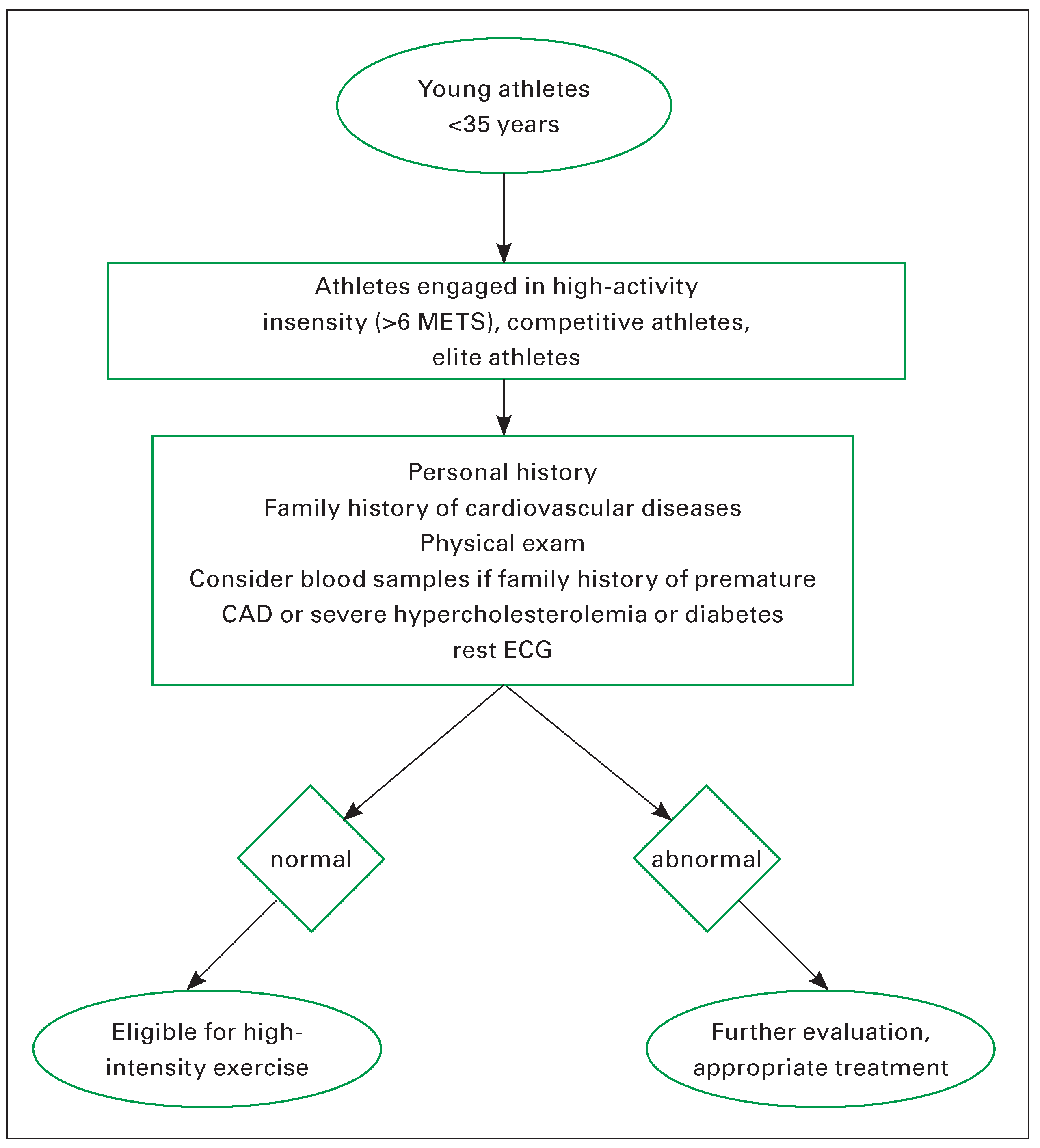 - Preparticipation screening in young athletes <35 years (Figure 1):