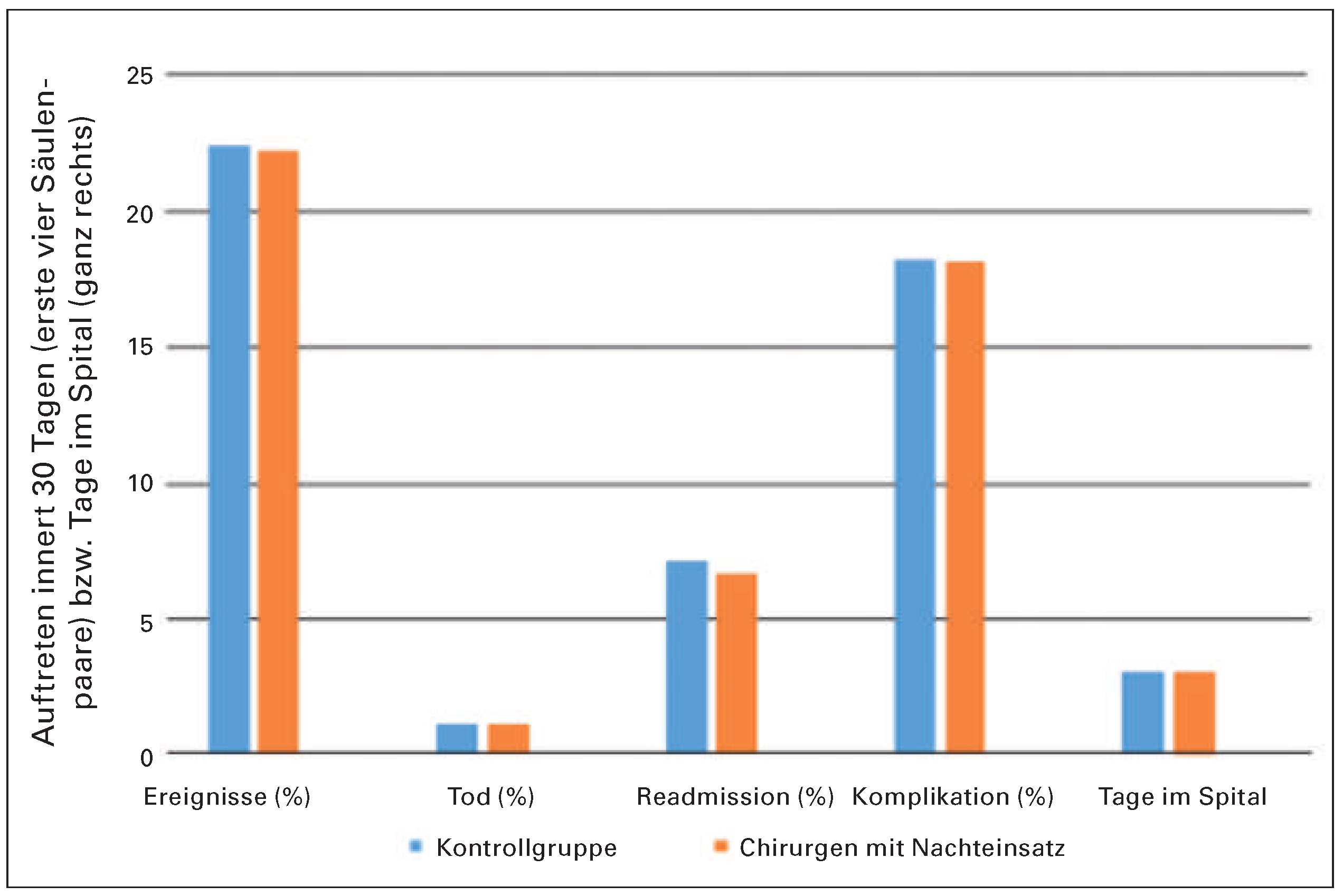 Nach all dem Ärger fragt man sich: Dient das Ganze wenigs tens einem höheren Zweck? Gewerkschaften wie der VSAO argumentieren, dass die Arbeitszeitbeschränkung, wie sie heute umgesetzt wird, der Patientensicherheit diene, ja für eine hohe Behandlungsqualität zwingend sei. Überarbeitete Ärzte machten Fehler, deshalb sei das Pensum wie bei Chauffeuren und Piloten zu beschränken. Zunächst will man verständnisvoll nicken. Doch dann stellt sich die Frage: Ist das auch evidenz basiert? Führt das Arbeitsgesetz wirklich zu besseren medizinischen Ergebnissen? Eine Einschränkung des Gesetzes ist die Anzahl von Nachtdiensten und die zwingend erforderliche Kom pensation am Tag danach. Führt ein Nachteinsatz ohne Kompensation im Katheterlabor oder Operationssaal am nächsten Tag zu einer erhöhten Mortalität? Die Amerikaner haben es an nahe zu 40 000 Patienten, die von 1448 Chirurgen operiert wurden, untersucht [