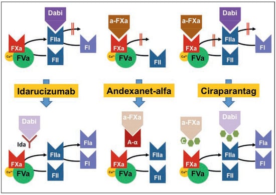 - Pollack, C.V., Jr.; Reilly, P.A.; Eikelboom, J.; Glund, S.; Verhamme, P.; Bernstein, R.A.; et al. Idarucizumab for Dabigatran Reversal. N Engl J Med. 2015, 373, 511–520. [Google Scholar] [CrossRef]