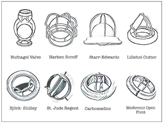 After more than 50 years of evolution, mechanical valve replacement represents an optimal treatment for patients with heart valve disease. Mortality decreased progressively and no differences in term of prognosis have been described when comparing mechanical with biological valves [16,17]. Figure 1 shows the evolution of mechanical heart valve prostheses.