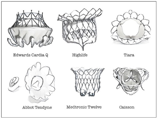 Several devices (Figure 5) have been introduced, but the procedure is still technically demanding and the patient’s anatomy is still a controversial issue for feasibility. Risk of left ventricular outflow tract obstruction, optimal fixation to the native mitral annulus and access nowadays represent the greatest challenges in TMVI procedures [37].
