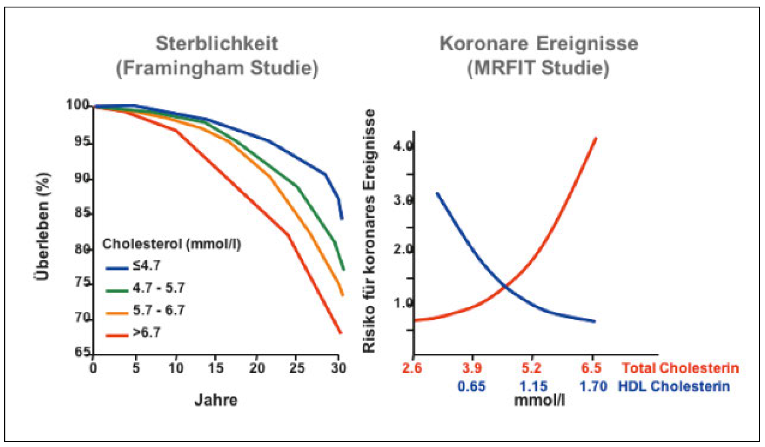 Cholesterin korrelliert mit Infarkt und Tod