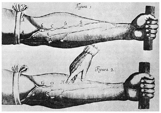 Es brauchte noch den Geist, der alles neu zu ordnen wusste. Harvey erkannte, dass das Leben an Leichen nicht verstanden werden konnte. Während die Anatomen tote Organe beschrieben und ihre Bewegung und Funktion bestenfalls erahnten, beobachtete Harvey an den sichtbaren Venen seines Vorderarms, dass Venenklappen den Blutfluss nur herzwärts zuliessen (