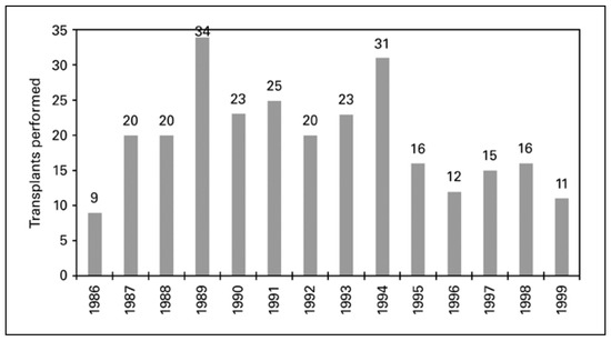 This pioneering procedure encouraged many renowned heart surgeons to begin heart transplatation in their own centres, but first results were disappointing. Review of the first worldwide experience with human heart transplantation shows that only 3 out of 19 patients survived 30 days [2], Disappointment with clinical results, which was probably due to lack of proper preparation and limited immunosuppression, led to a sharp drop in number of heart transplants worldwide (Figure 1).