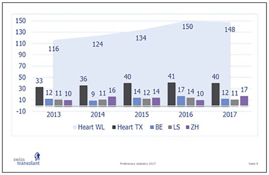 In the nineties the number of Swiss heart transplants was reduced owing to the lack of donors, so that the waiting period for a transplant became seriously extended. Today, only 27% of patients on the waiting list receive a heart (Figure 4). Today, various methods are being explored to alleviate the scarcity of donors. One of them is the donation after circulatory death: