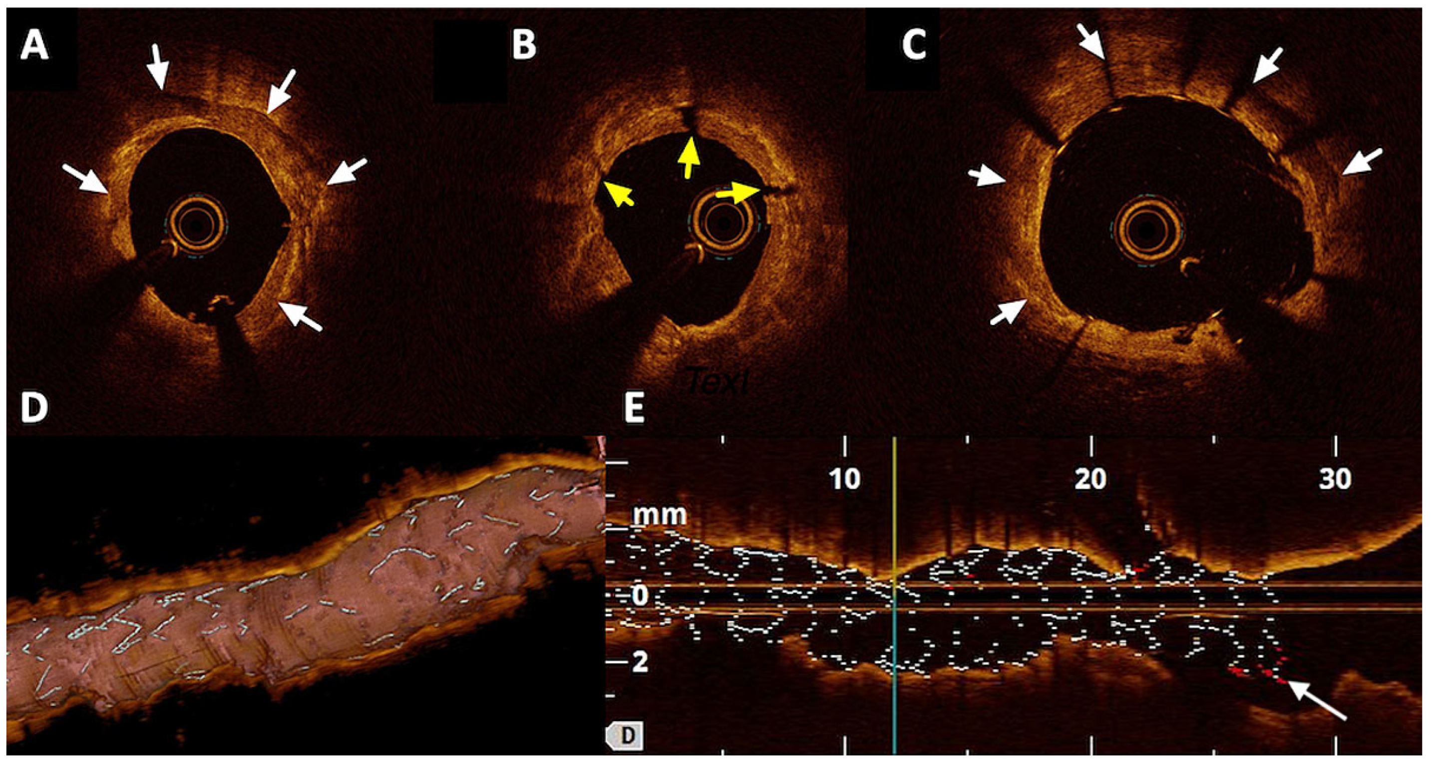Figure 1B (arrow). The subsequent OCT run confirmed the prevalence of extensive circular calcium (