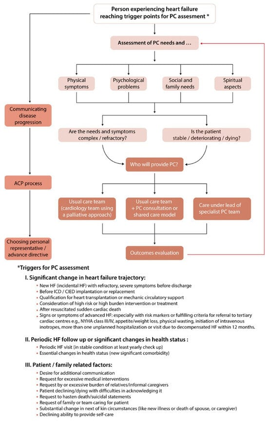 Provision of palliative care for people living with heart failure flow chart and triggers for needs assessment. Reprinted from [13] by permission the Oxford University Press.
