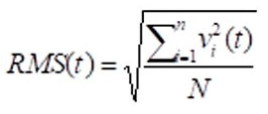 RMS calculation. N = number of analysed channels, vi = voltage [mV] of lead i.