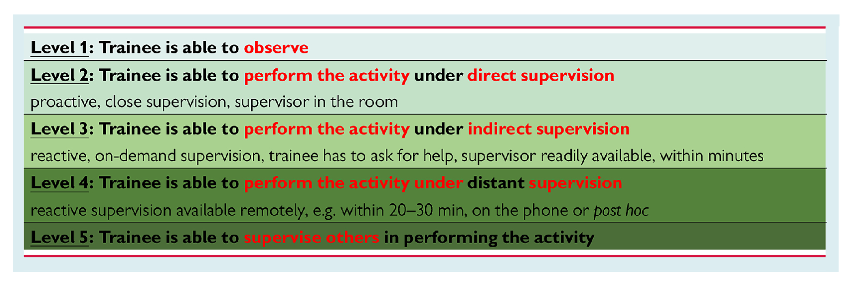 3]. Therefore, it is now generally accepted that training programmes should not rely on numbers of procedures in a rigid manner; modern programmes should instead consider the individuality of learning by focusing on competence levels. As this is exactly what EPAs offer, they represent an excellent method for solving the issue of individual learning in training programmes.
