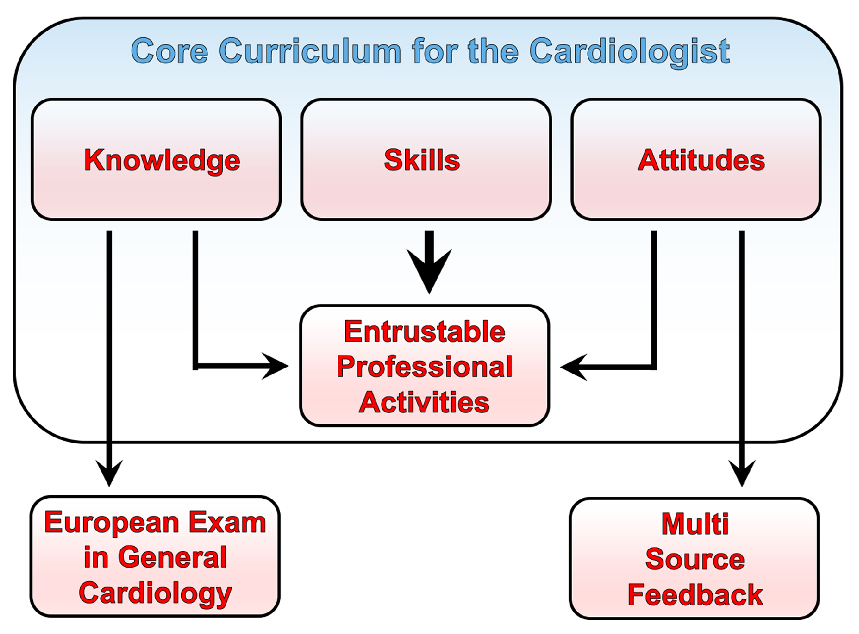 The European Society of Cardiology (ESC) has published several versions of the core curriculum for general cardiology during the last 20 years. The current version was published in 2020 and was considered necessary for several reasons: (a) cardiological knowledge has changed as a result of intense research activities, (b) new skills are required owing to new devices and interventions, and (c) there are increasing demands on assessment of competencies in the clinical context. Therefore, the current version of the ESC core curriculum offers an updated content, and a focus on clinical competencies and their assessment in the clinical context [