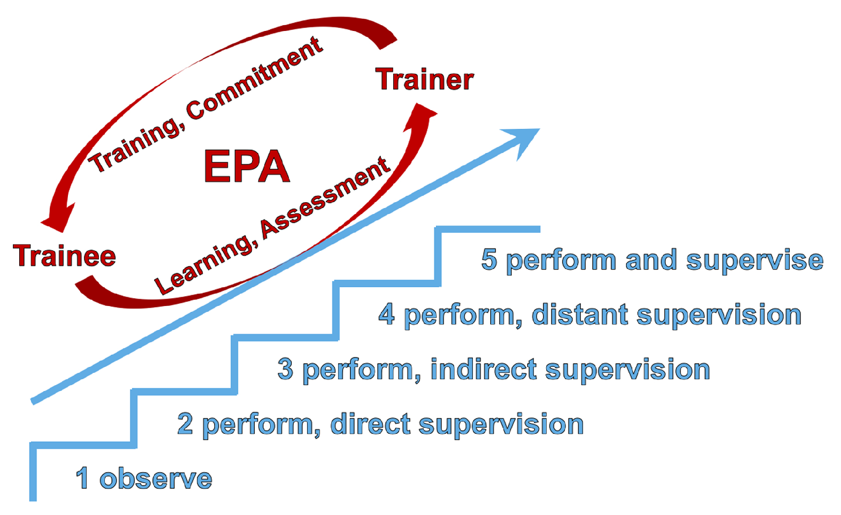Figure 2). As a result of these properties, EPAs are ideal for assessing the professional skills of a trainee in the clinical context. To complete an EPA successfully means that the trainee has reached an adequate level of clinical competence and the trainer has developed sufficient trust in the trainee to let the latter execute the clinical activity in an independent manner.