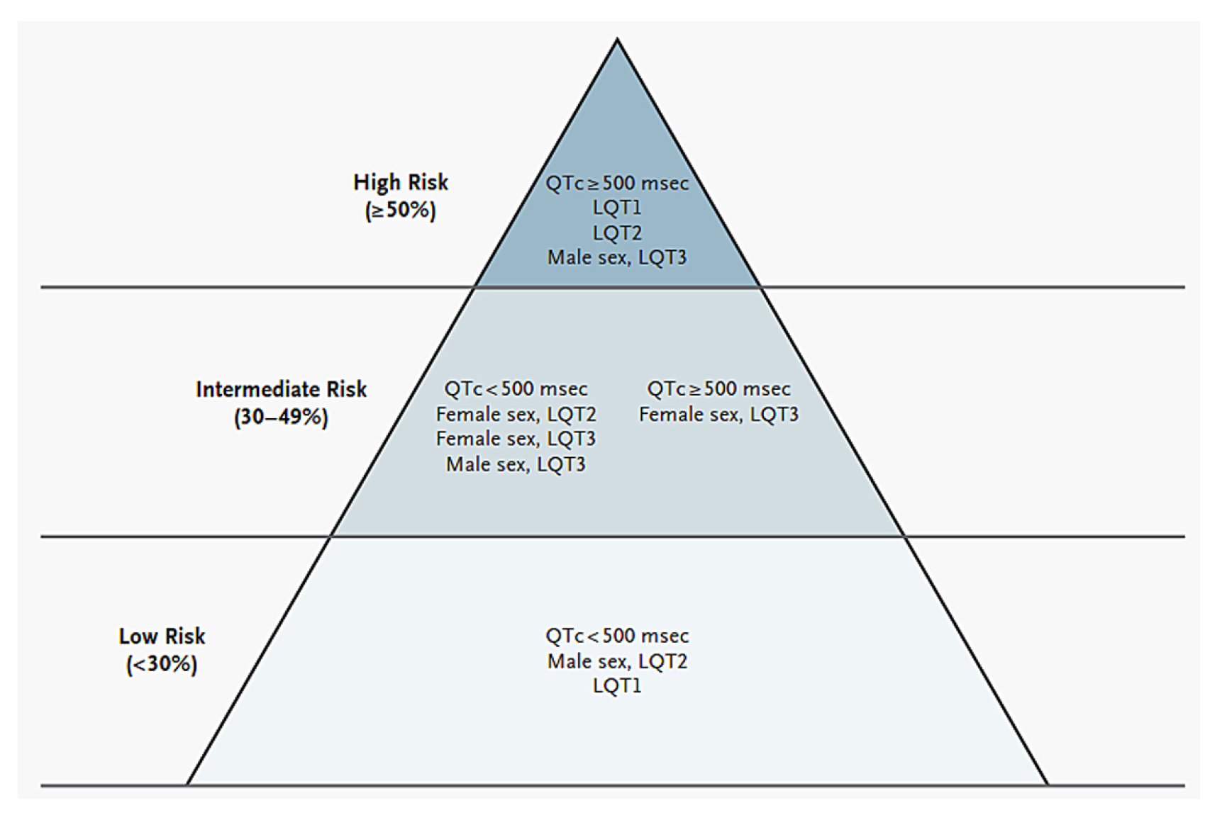1], sind im KCNQ1-Gen (LQTS1), KCNH2-Gen (LQTS2) und SCN5A-Gen (LQTS3) zu finden. Alle werden autosomal-dominant vererbt. Rhythmusstörungen werden dabei häufig durch einen bestimmten Trigger ausgelöst: beim LQTS1 typischerweise durch sportliche Aktivitäten (insbesondere Schwimmen), beim LQTS3 während des Schlafes oder Ruheperioden und beim LQTS2 durch akustische Reize [