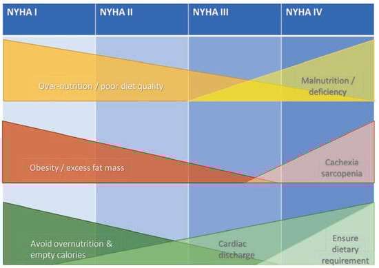 - Depending on the stage of heart failure, nutrition can influence the development and progression of the disease in different ways: from over-nutrition in early, to malnutrition in advanced stages.