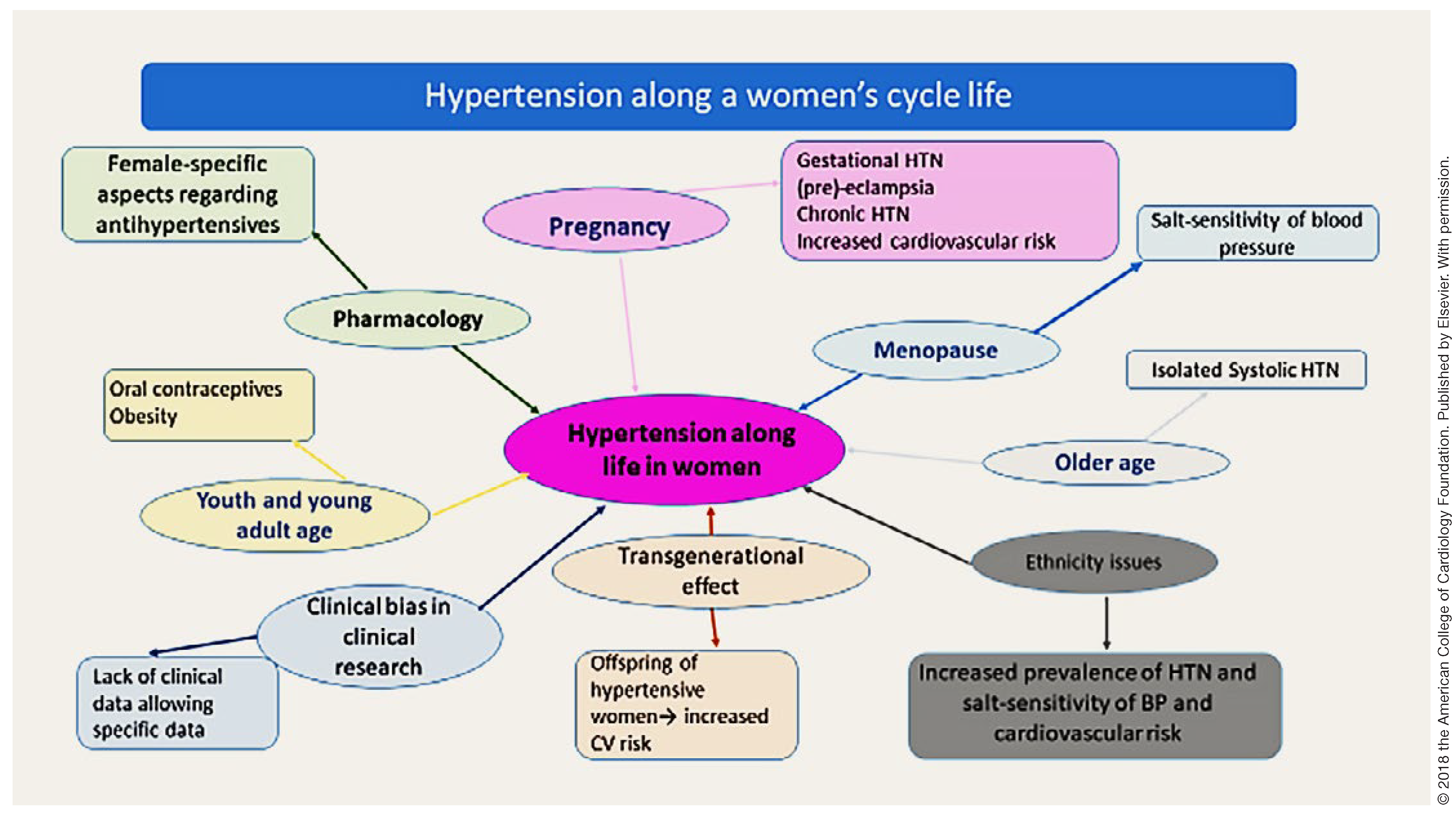 16]. This is probably linked to an avoidance of ACEIs and ARBs in women of childbearing age due to teratogenic risks. Salt sensitivity of the BP seems to be more frequent in women. Perimenopausal women are more prone to this phenotype [