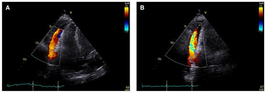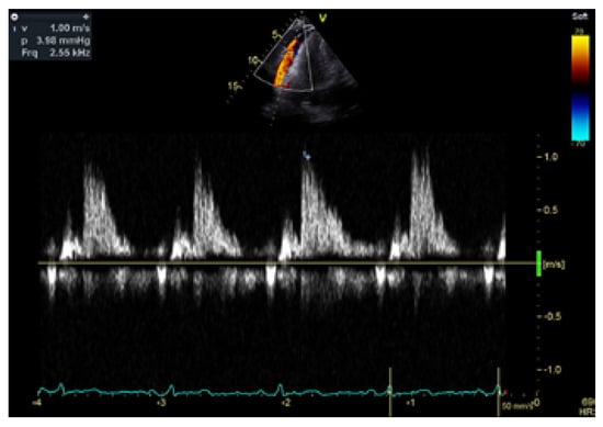 - Gerber, T.C.; Safford, R.E. Intrapericardial Doppler-flow signals in cardiac tamponade. Clin Cardiol. 1999, 22, 231–232. [Google Scholar] [CrossRef] [PubMed]