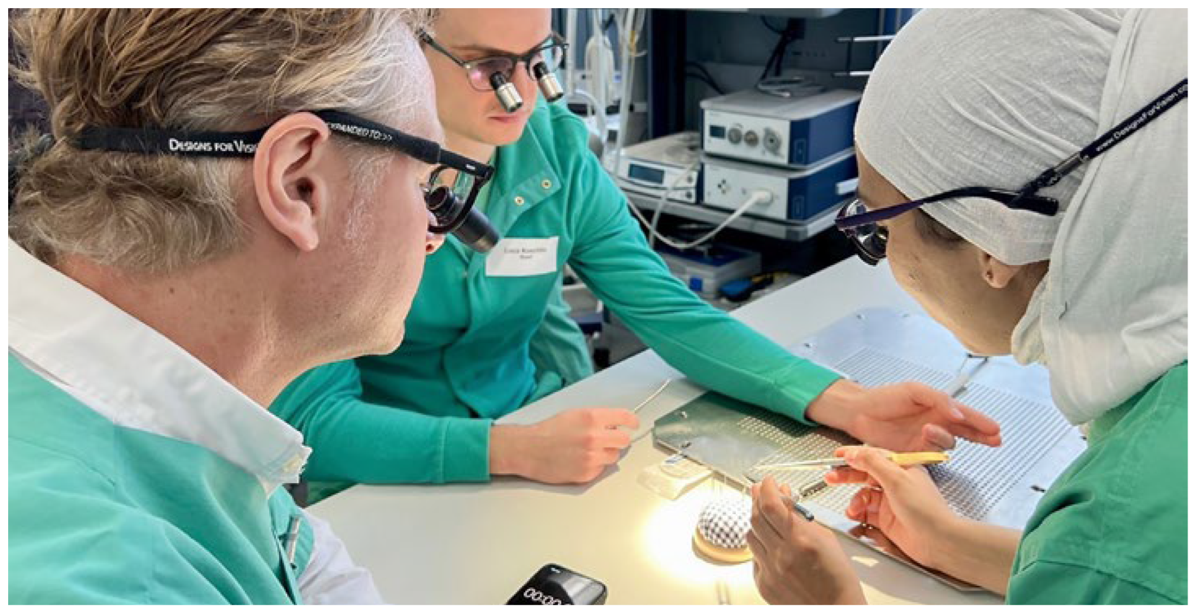 After an exciting first day and a late-night movie about the history of the BlalockThomas-Taussig shunt, the best was yet to come. What happens at midnight when you are on call? With almost certainty, there is that one emergent surgical patient coming—and this is exactly what happened during the night! Over a period of almost six hours, the trainees worked on various heart valve replacements, bypass techniques and at the very end, the infamous “UFO” procedure. During these hours, the group established this indescribable atmosphere where you try to motivate your tired buddy, sit quietly next to a colleague taking a power nap, share snacks or take a short break to breathe in fresh air. After the third basic assessment and the sunrise, we greeted the day with a short meditation. The last twelve hours were the hardest. During breaks people would stretch, do burpees, try to motivate each other and the phrase “come on, we can’t stop now!” was heard a few times. Finally, at eight o’clock sharp on Saturday night and after the fourth and final basic assessment, we had made it. Suddenly, everyone was wide awake and full of pride of making it all the way through the schedule as a team. After a toast to the program director, the supporters, coaches and colleagues, we had dinner accompanied by delightful and constructive talks about the program. At last, there was time for a long-awaited shower and some much-needed sleep. The next day, the group met for a debriefing over breakfast before departure. One month later, the group was honored during the opening ceremony of the annual meeting of the German Society for Thoracic and Cardiovascular Surgery. The individual analyses and evaluated personal files were handed out together with a certificate of completion.