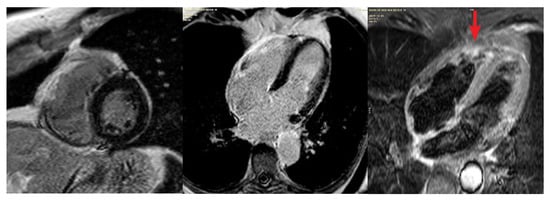 When the etiology is still unclear, CMR represents a fundamental investigation. Late gadolinium enhancement (LGE) in the subendocardium suggests myocardial ischemia, subepicardial LGE distribution may indicate myocarditis, the absence of LGE is associated with oedema and typical wall motion abnormalities are pathognomonic for a Takotsubo syndrome. Moreover, a CMR can identify other causes of sudden cardiac arrest, like arrhythmogenic cardiomyopathy or cardiac sarcoidosis [8].
